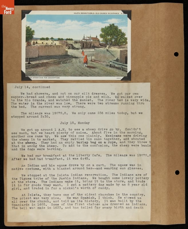 THF240573 / Travel Log of a Coast-to-Coast Automobile Round-Trip, July 9-August 13, 1935 / page 14, detail 1