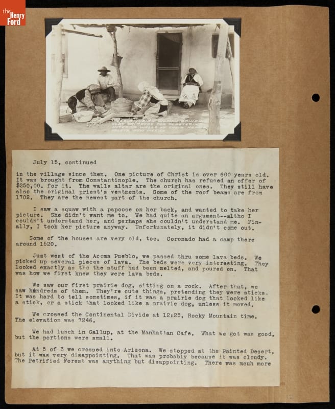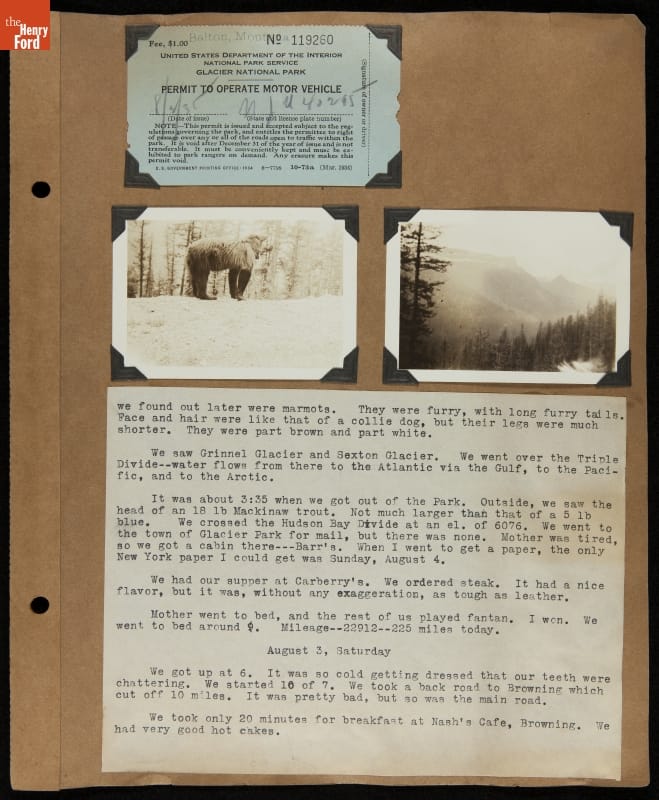 THF240691 / Travel Log of a Coast-to-Coast Automobile Round-Trip, July 9-August 13, 1935 / page 34, detail 2