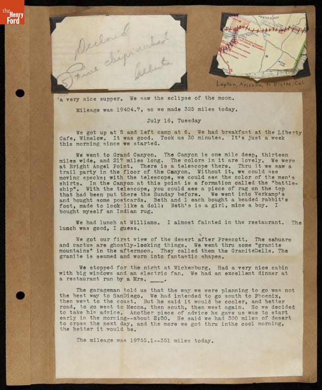 THF240578 / Travel Log of a Coast-to-Coast Automobile Round-Trip, July 9-August 13, 1935 / page 16, detail 1