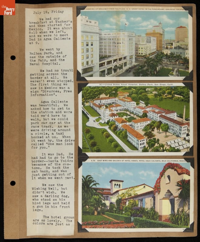 THF240589 / Travel Log of a Coast-to-Coast Automobile Round-Trip, July 9-August 13, 1935 / page 19, detail 1