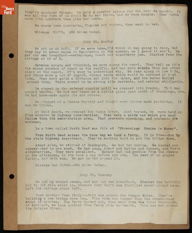 THF240615 / Travel Log of a Coast-to-Coast Automobile Round-Trip, July 9-August 13, 1935 / page 29, detail 1