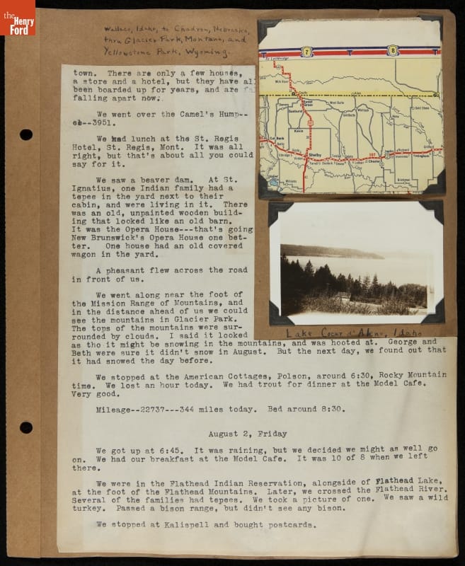 THF240785 / Travel Log of a Coast-to-Coast Automobile Round-Trip, July 9-August 13, 1935 / page 61, with insert
