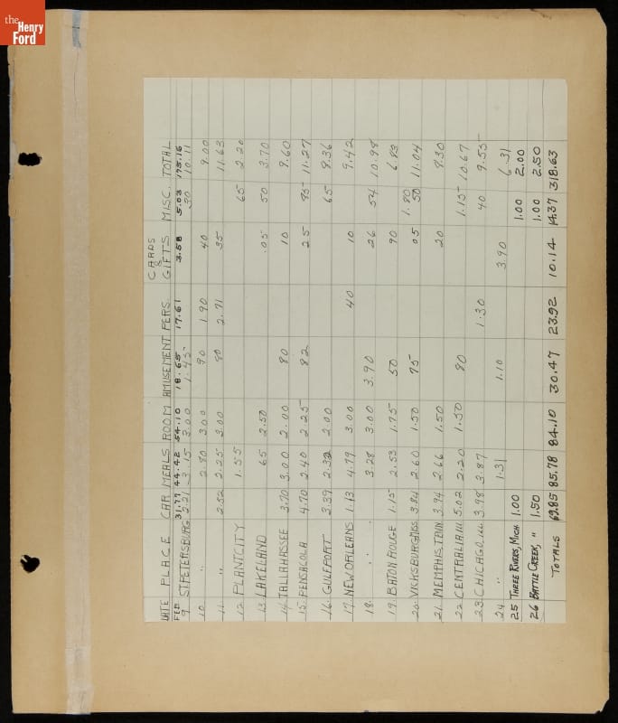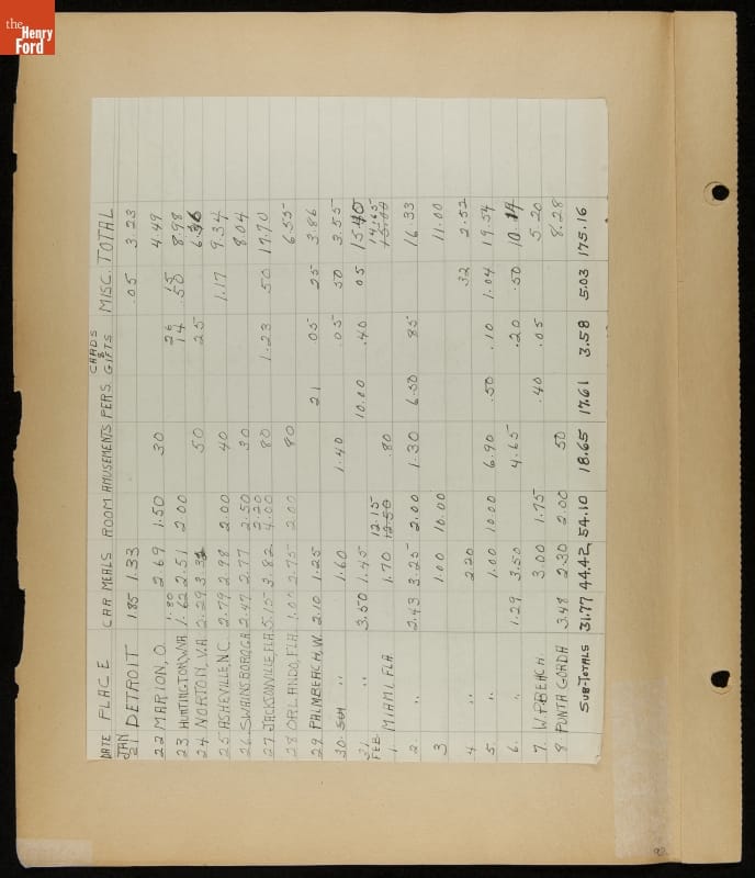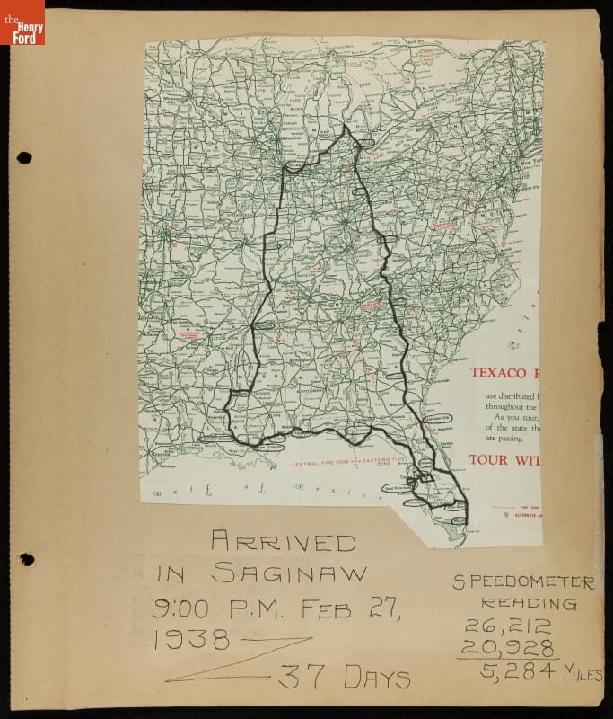 Travel Log of an Automobile Round-Trip from Saginaw, Michigan to Miami, Florida, January 21-February 27, 1938