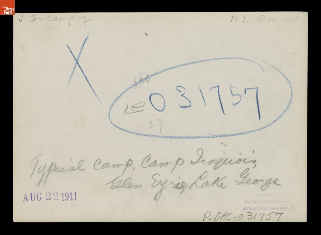 Typical Campsite, Camp Iroquois, Glen Eyrie, Lake George, New York, 1911