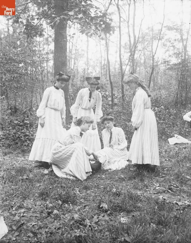 Group of Women in Forest Park, One with Injured Ankle, 1890-1915