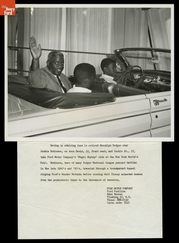 For its pavilion at the 1964-65 New York World's Fair, Ford Motor Company brought in Walt Disney to design a "unique and memorable entertainment adventure" that would outshine its competitors. This became the Magic Skyway ride, in which guests sat in Ford convertibles through a Disney-designed show. The ride attracted many celebrities, including baseball great Jackie Robinson.