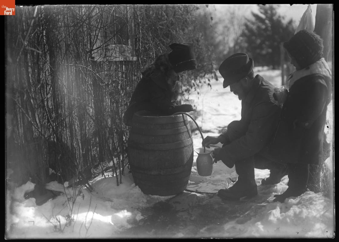 Julian Burroughs Pouring Cider with Daughters Ursula and Elizabeth, circa 1909