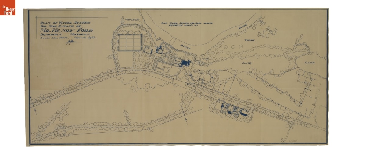 Landscape Architecture Drawing for Fair Lane, "Plan of Water System," March 1921