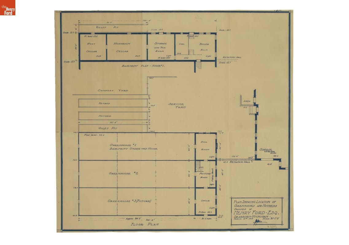 Landscape Architecture Drawing for Fair Lane, "Plan showing location of Greenhouses and Hotbeds," March 1915
