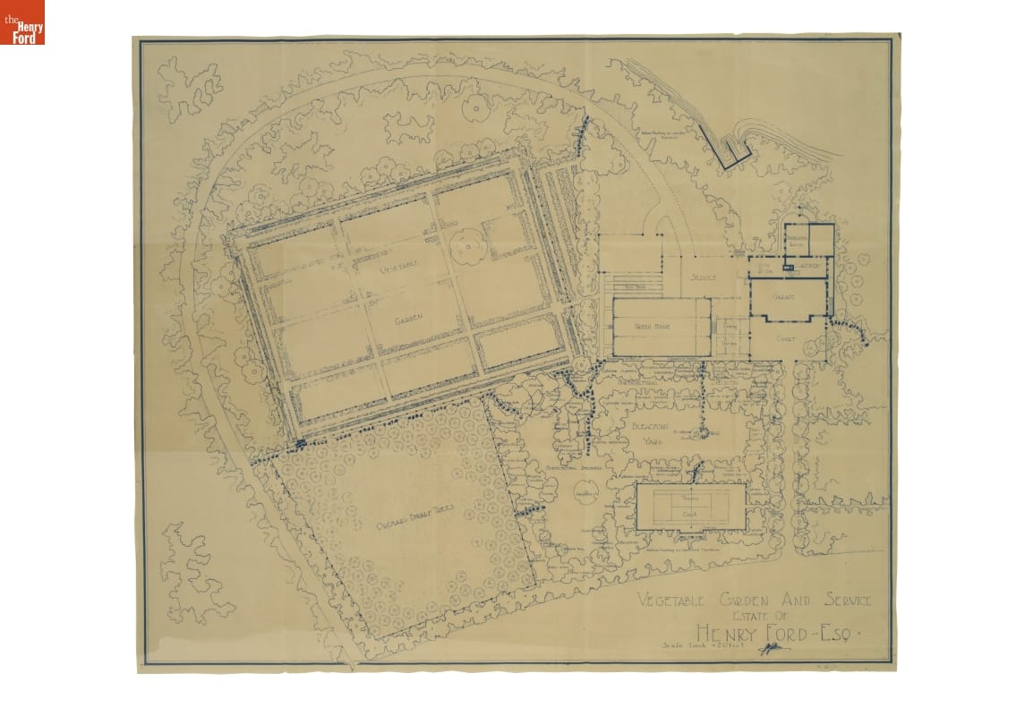 Landscape Architecture Drawing for Fair Lane, "Vegetable Garden and Service, Estate of Henry Ford," 1913-1915