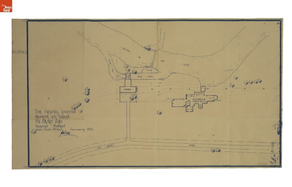 Landscape Architecture Drawing for Fair Lane, "The original Location of Residence and Garage," January 1914