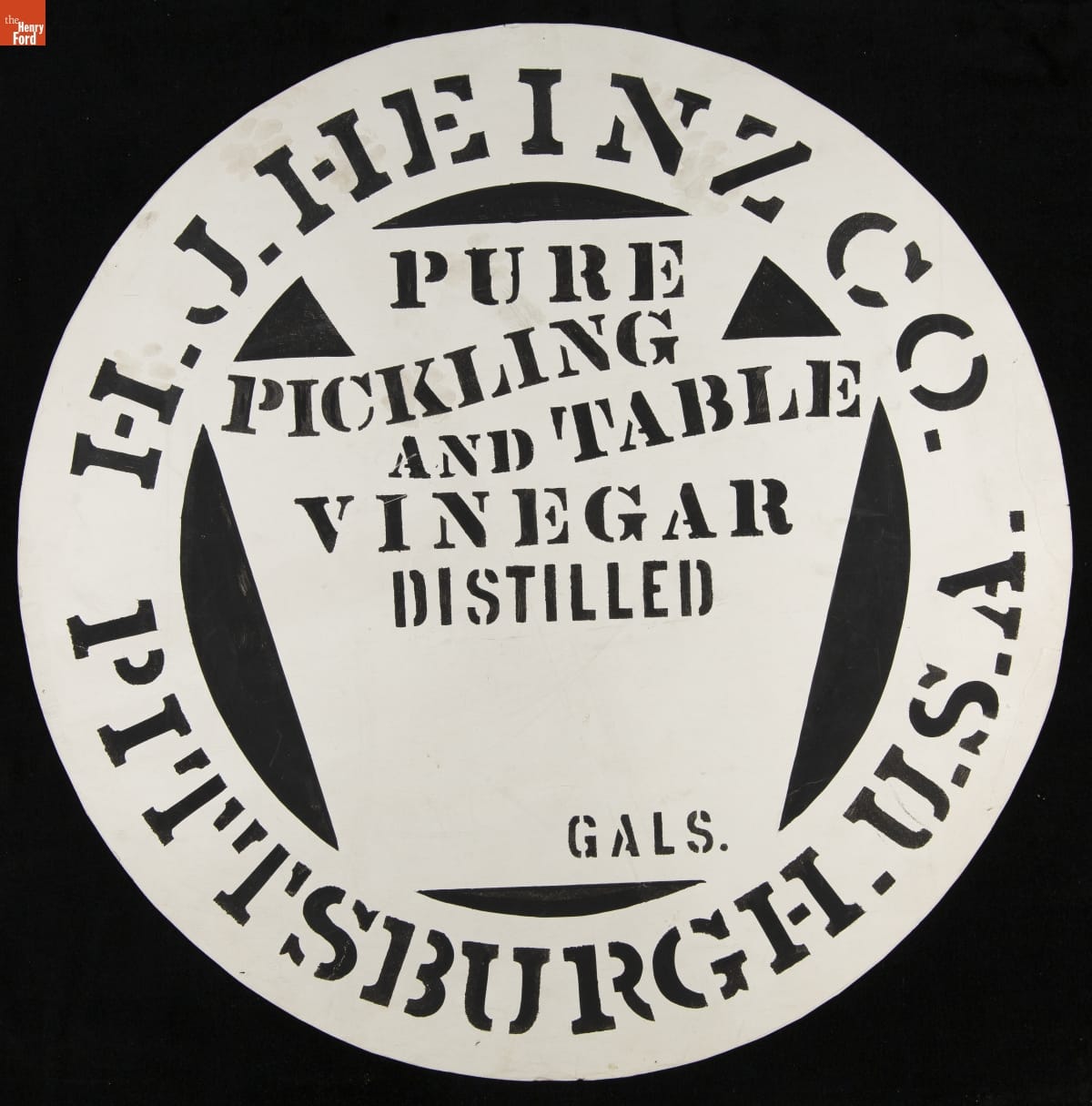 The famous "57 Varieties" of the H.J. Heinz Company included several kinds of vinegar. Vinegar was often stored in barrels, and with many different varieties, the barrels had to be properly identified. Stencils, like this one, helped ensure that the vinegars didn't get mixed up.