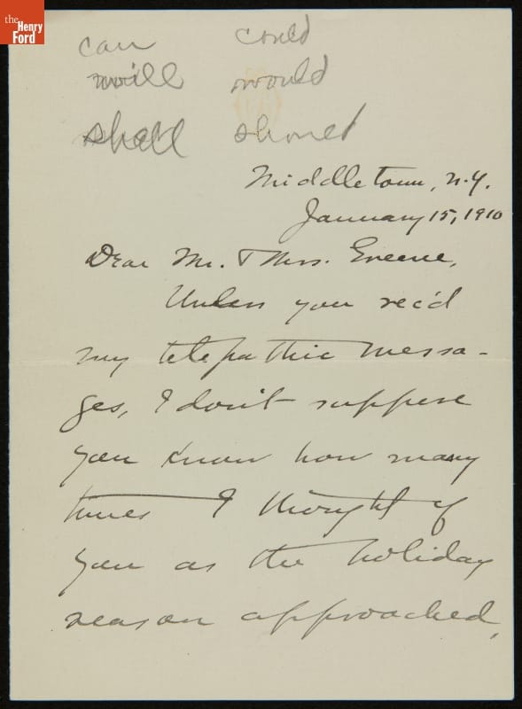 Letter from Clara Barrus to Mr. and Mrs. J. Edward B. Greene, January 15, 1910