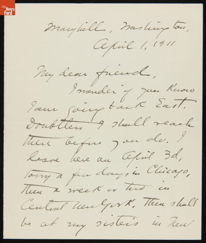 Letter from Clara Barrus to Mrs. J. Edward B. Greene, April 1, 1911