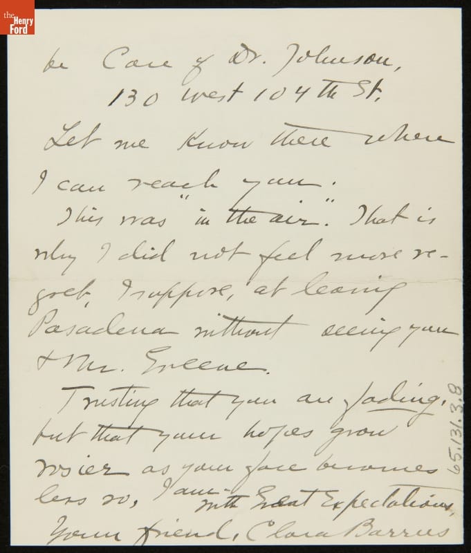 Dr. Clara Barrus was one of a small number of women who graduated from medical school in the late 19th century. In 1901, she began a close friendship with John Burroughs, the famous naturalist. Burroughs later named Barrus his literary executor and official biographer. Her correspondence covers a variety of subjects, including her relationship with Burroughs and her experiences setting up her own private sanatorium.