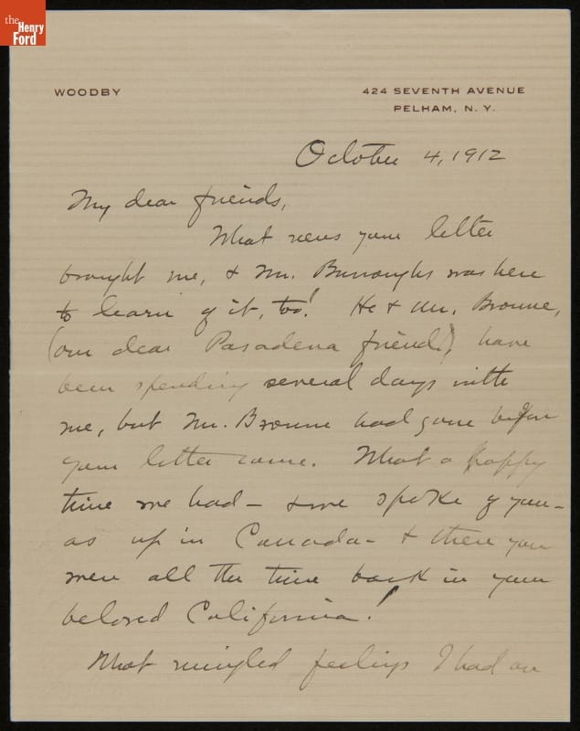 Letter from Clara Barrus to Mrs. J. Edward B. Greene, October 4, 1912