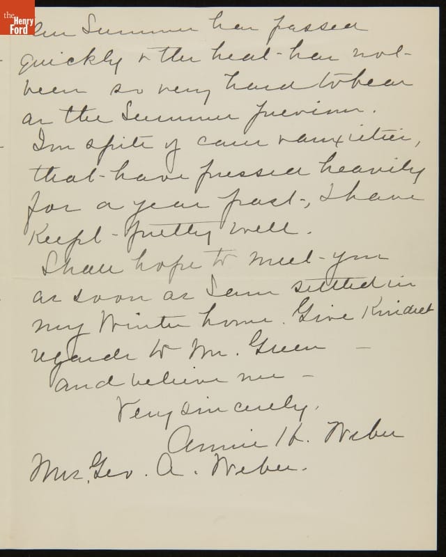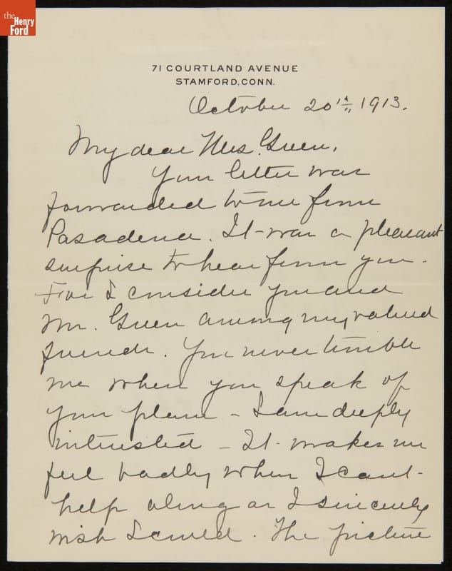 Letter from Annie Weber to Eva C.B. Greene, October 20, 1913