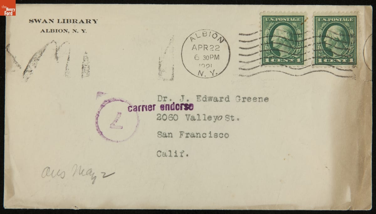 Letter from Lillian A. Achilles to J. Edward B. Greene, April 22, 1921
