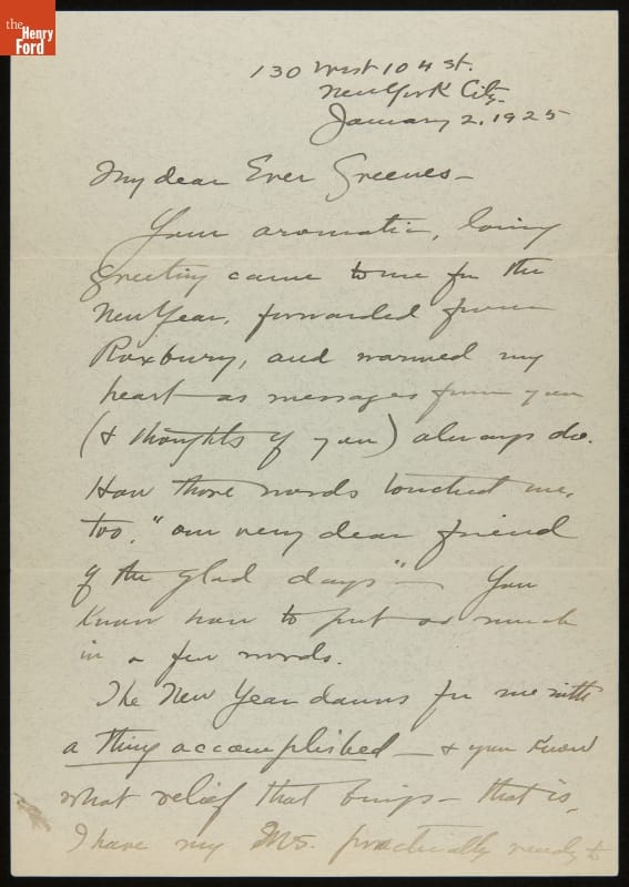 Letter from Clara Barrus to Mr. and Mrs. J. Edward B. Greene, January 2, 1925