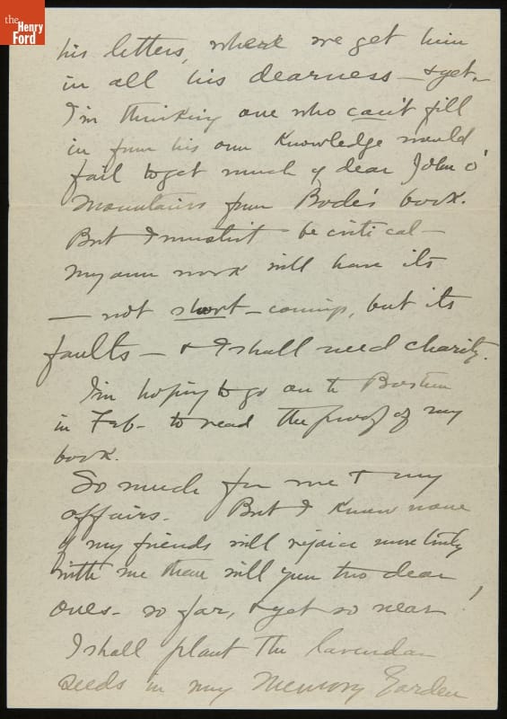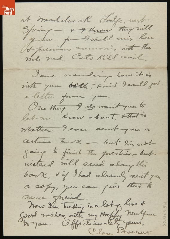 Dr. Clara Barrus was one of a small number of women who graduated from medical school in the late 19th century. In 1901, she began a close friendship with John Burroughs, the famous naturalist. Burroughs later named Barrus his literary executor and official biographer. Her correspondence covers a variety of subjects, including her relationship with Burroughs and her experiences setting up her own private sanatorium.