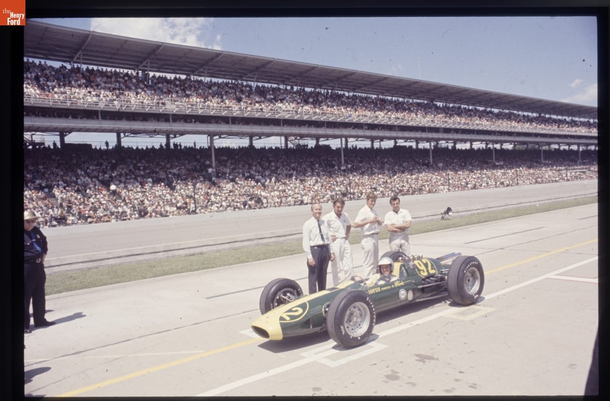 Dave Friedman has captured and preserved auto racing history through his photography. His work -- and his collection of works by other photographers -- documents key races, vehicles, drivers, and teams. This color slide is one of several hundred images that document the 1963 Indianapolis 500. These images record not only the May 30th race, but also the time trials and garage, pit, and infield activities.