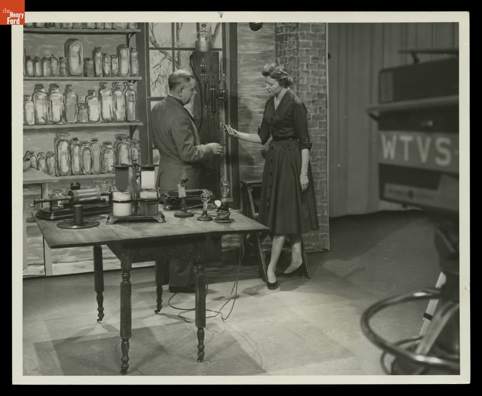 Beginning in the 1950s, Henry Ford Museum and Greenfield Village partnered with WTVS, Detroit's local educational television station, to bring American history into the classroom. Window to the Past was a 15-minute weekly series created and hosted by Marion Corwell, the museum's Manager of Educational Television. The February 28, 1956 episode introduced students to Thomas Edison and his famous inventions.