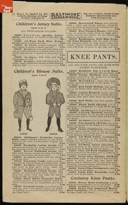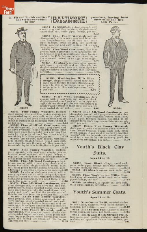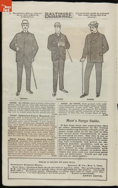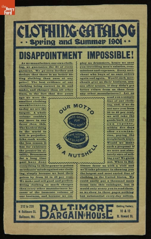 Baltimore Bargain House Clothing Sales Catalog, Spring and Summer, 1901