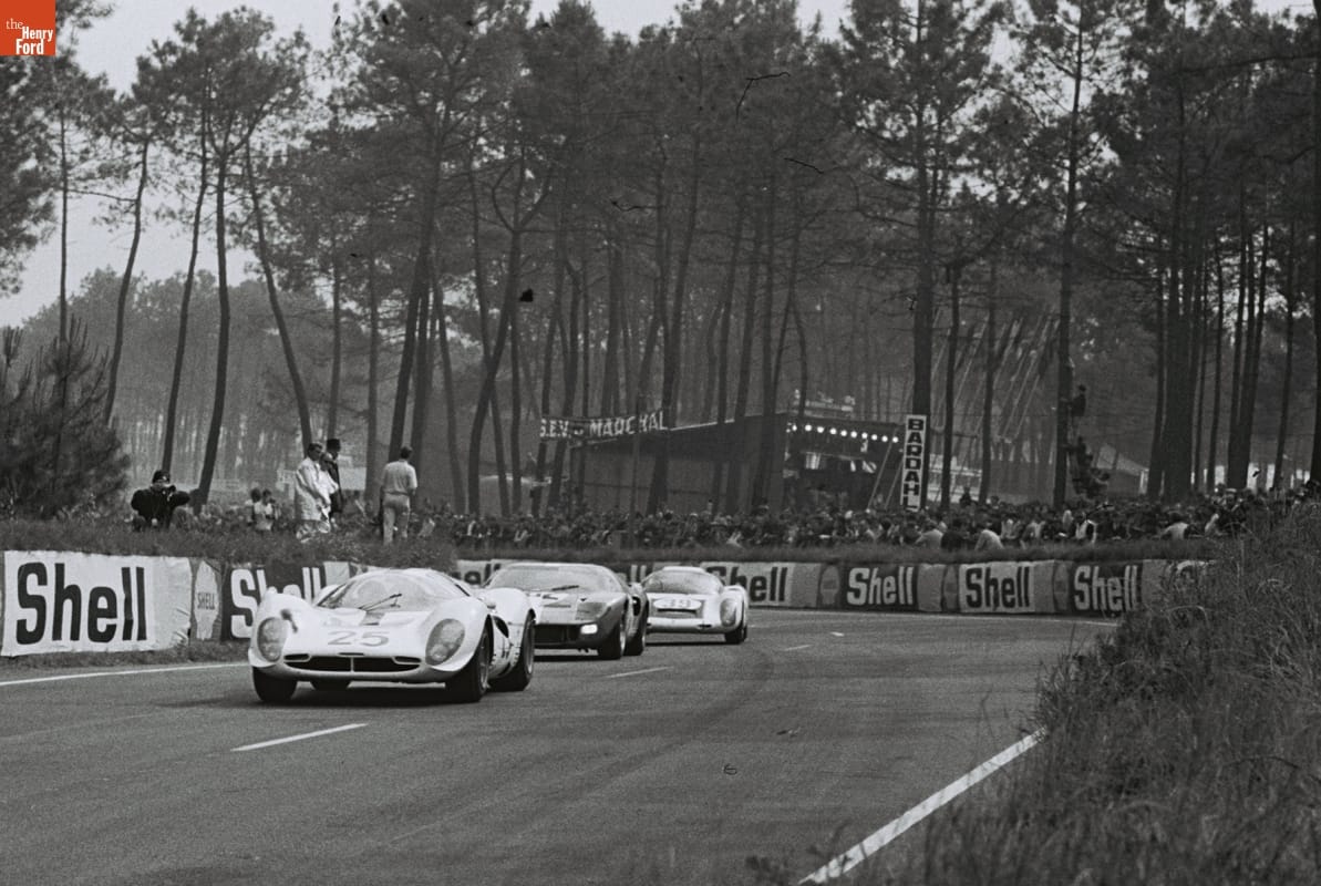 Ferrari, Ford, and Porsche Cars in the 24 Heures du Mans (24 Hours of Le Mans) Race, June 1967