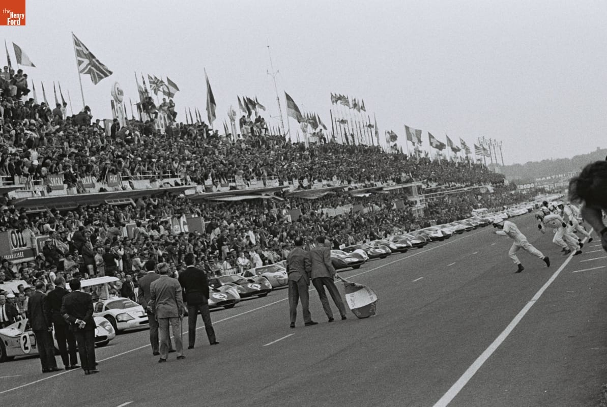 The "Le Mans start" was one of the French endurance race's more unusual customs. Drivers started on their feet, across the track from their respective cars. When the flag dropped, they ran to their vehicles, scrambled inside, and started the cars -- often not bothering to strap in until they were underway. Safety concerns ended the Le Mans start after 1969.