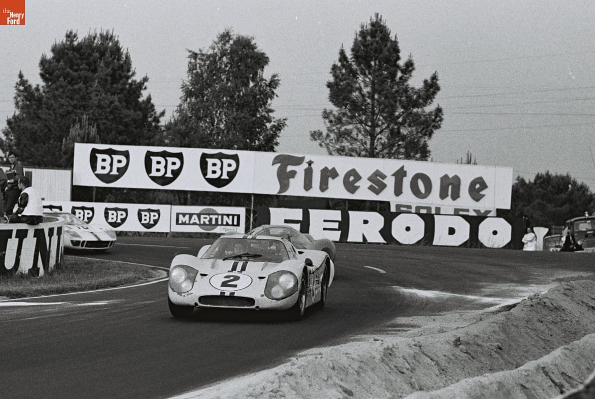 Fresh from its 1-2-3 podium sweep with the GT40 Mark II in 1966, Ford Motor Company entered four of its new Mark IV cars in the 24 Hours of Le Mans for 1967. Bruce McLaren and Mark Donohue co-drove the #2 car. Despite problems including a slipping clutch, the duo managed to finish the race in fourth place.