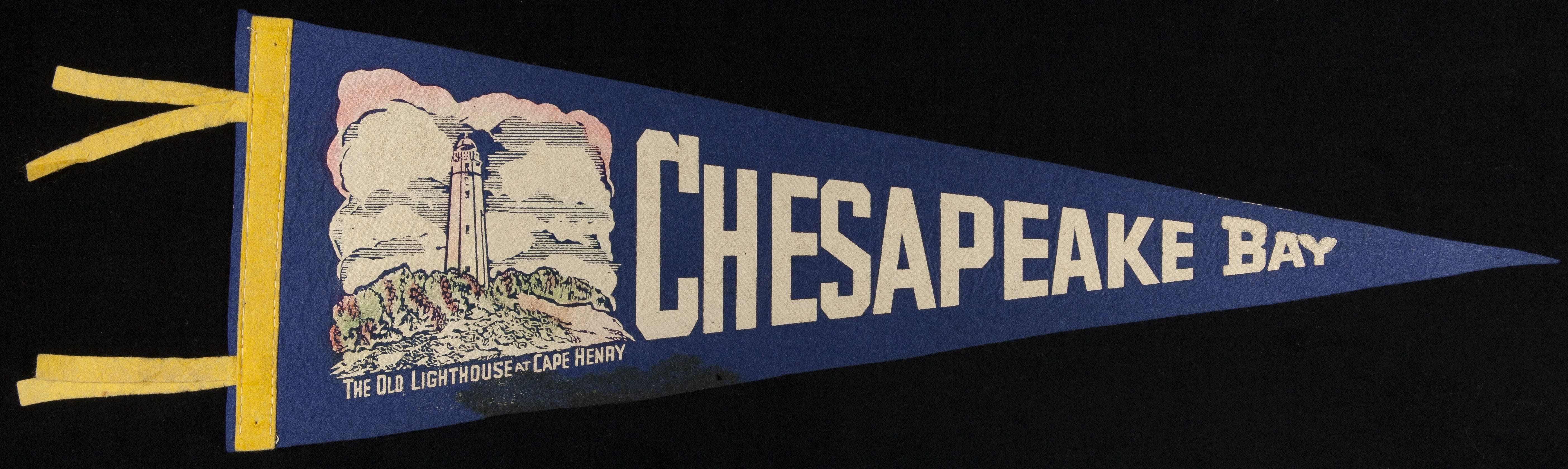 Tourists purchase simple, inexpensive souvenirs as proof of their travels. These mementos transport vacationers back to the places they visited and the things they did. In the mid-20th century, felt pennants were trendy. A trip to the Chesapeake Bay area may have included a stop at the old lighthouse at Cape Henry -- or a local gift shop, perhaps to pick up this souvenir.