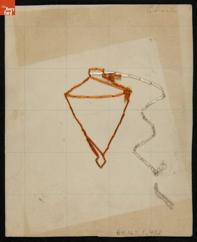 Edsel Ford created this threadwork drawing when he was a schoolboy. Like many doting parents, Henry and Clara Ford saved their only child's artwork. Clara nurtured Edsel's love of art and Henry encouraged his interest in automobiles. As Edsel grew, his creative and artistic sensibilities matured and he developed a talent for automotive design.