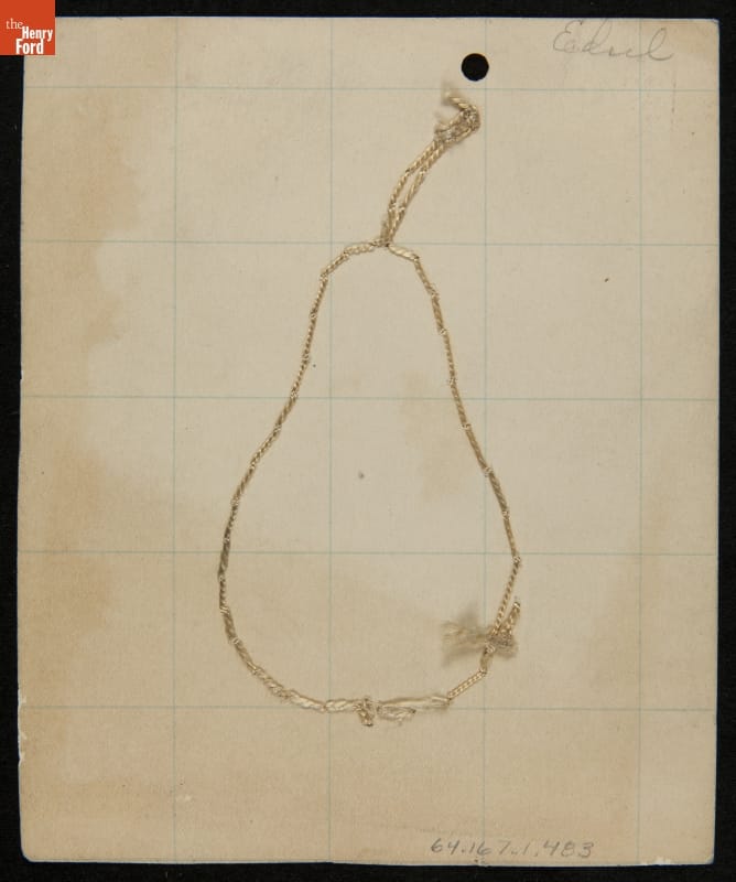 Edsel Ford created this threadwork drawing when he was a schoolboy. Like many doting parents, Henry and Clara Ford saved their only child's artwork. Clara nurtured Edsel's love of art and Henry encouraged his interest in automobiles. As Edsel grew, his creative and artistic sensibilities matured and he developed a talent for automotive design.