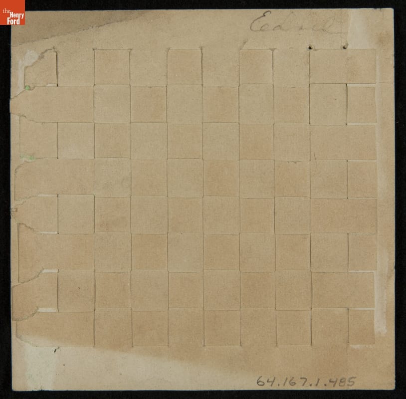 Edsel Ford created this paper weaving when he was a boy. Like many doting parents, Henry and Clara Ford saved their only child's artwork. Clara nurtured Edsel's love of art and Henry encouraged his interest in automobiles. As Edsel grew, his creative and artistic sensibilities matured and he developed a talent for automotive design.