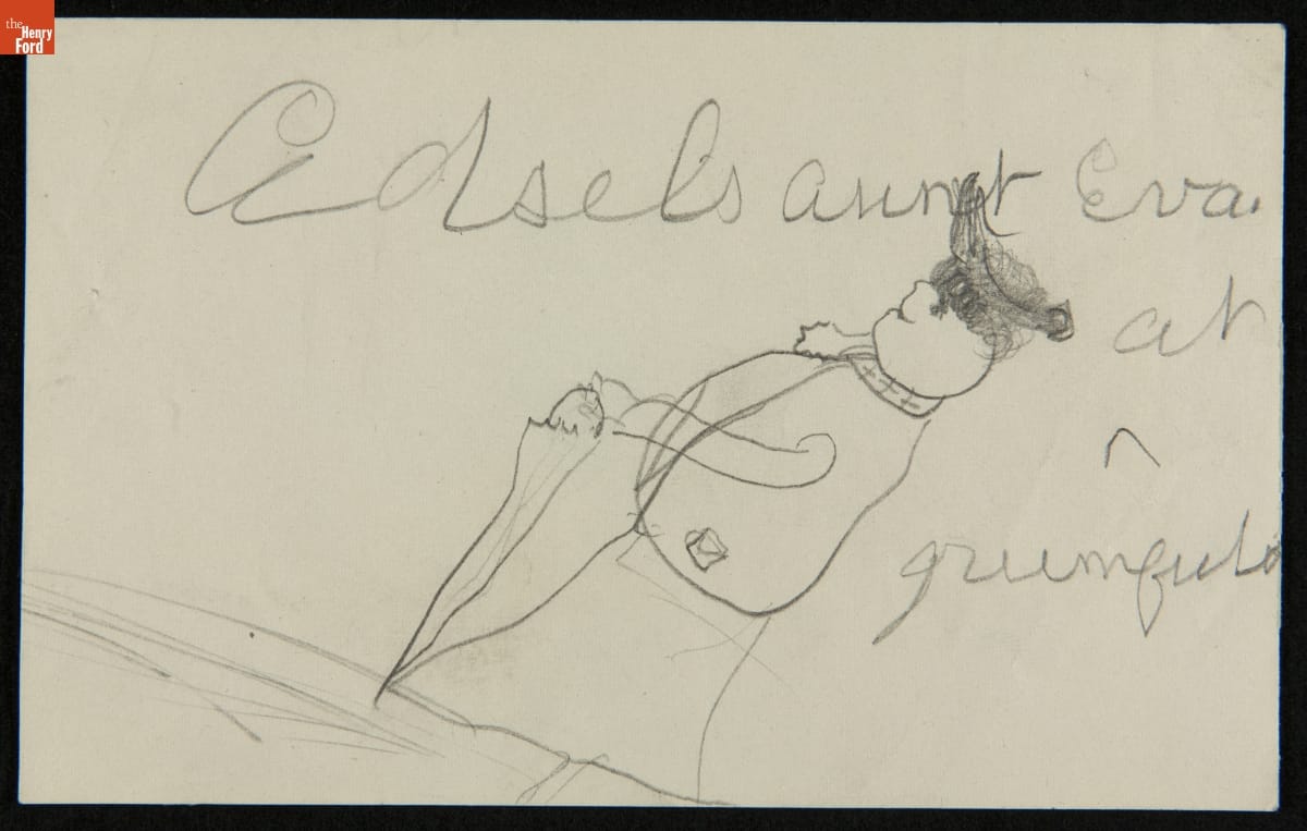 Drawing, "Aunt Eva at Greenfield" by Edsel Ford, 1898-1903