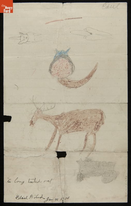 Edsel Ford created this drawing when he was a boy. Like many doting parents, Henry and Clara Ford saved their only child's artwork. Clara nurtured Edsel's love of art and Henry encouraged his interest in automobiles. As Edsel grew, his creative and artistic sensibilities matured and he developed a talent for automotive design.