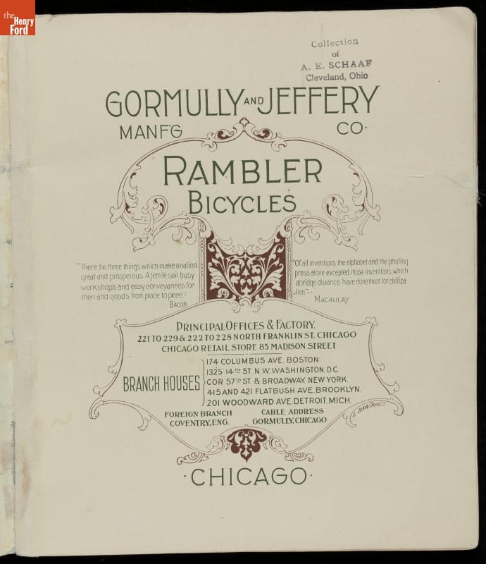 Gormully and Jeffery Manufacturing Company Rambler Bicycles, 1895