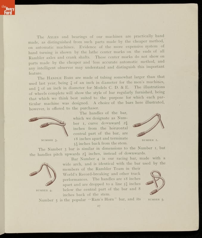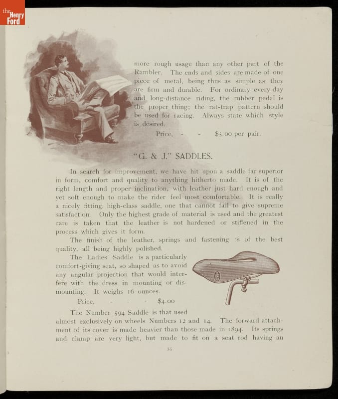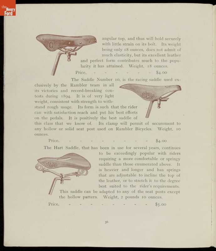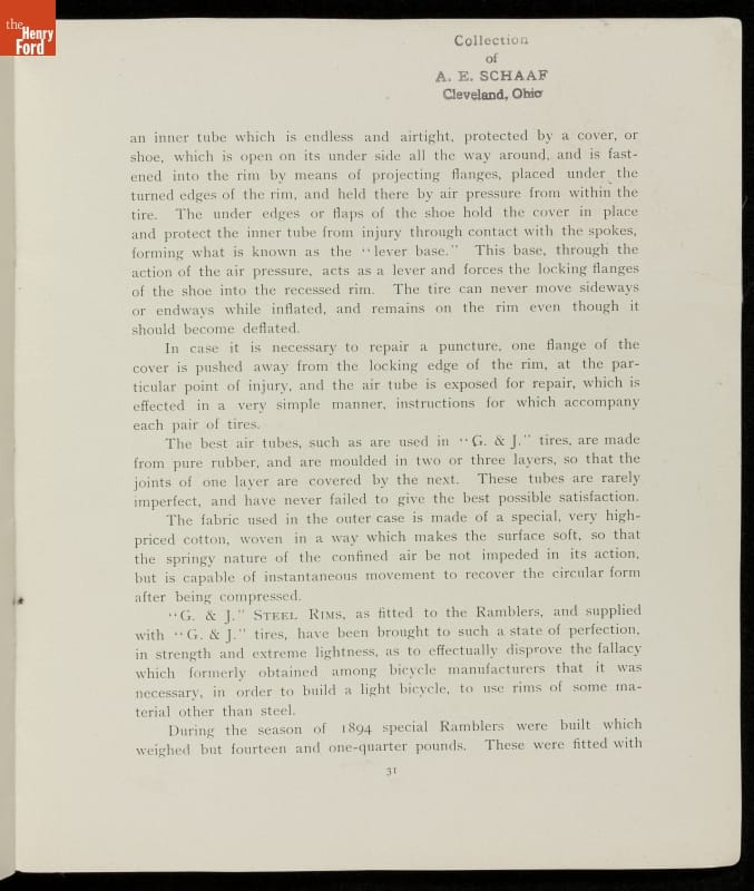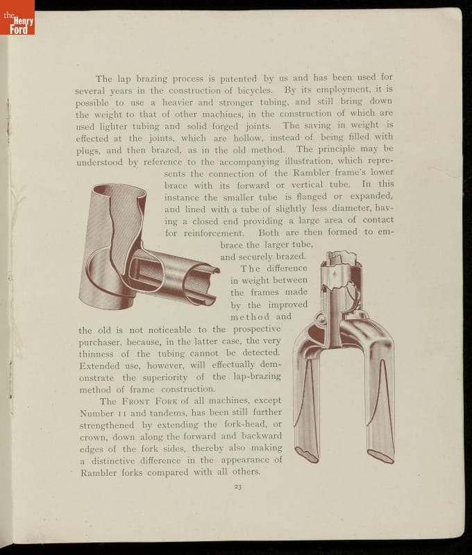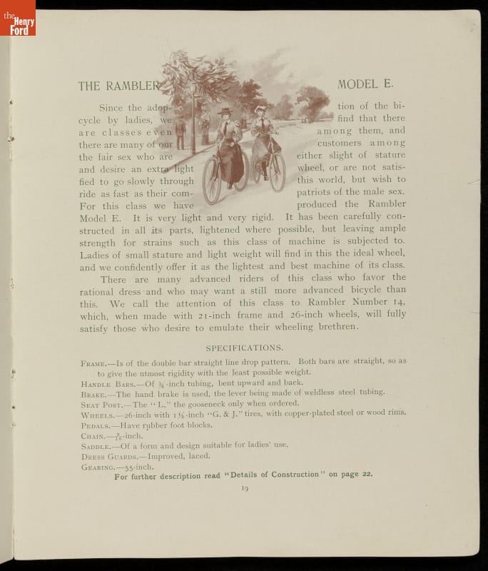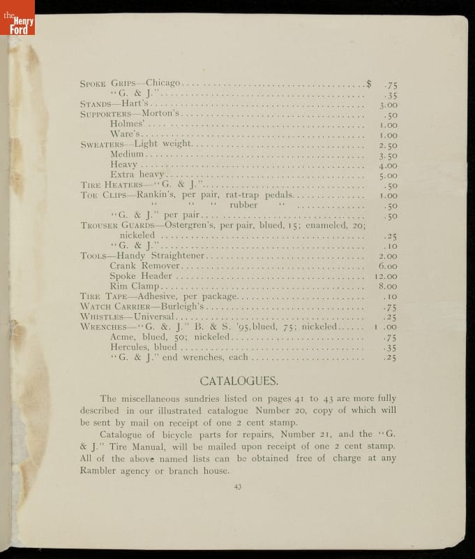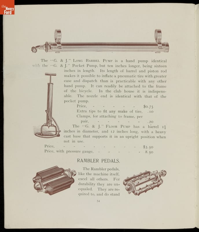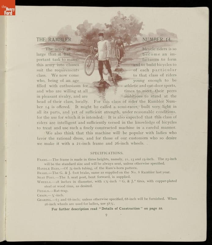 Gormully and Jeffery, maker of the Rambler bicycle, published this catalog in 1895. The pages contain specifications and images for a number of bicycles, and sections on the details of construction. Like most catalogs, the company praised its machines and quality manufacturing above all others.