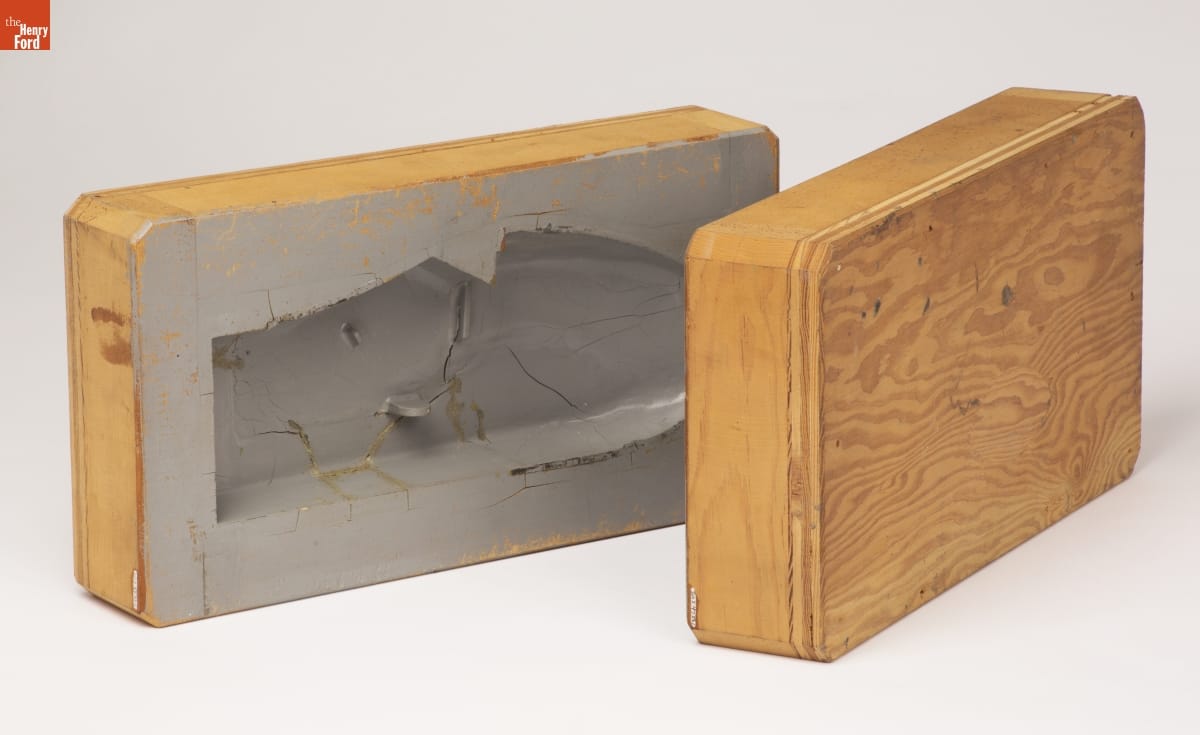 Tether cars, gas-powered model race cars, were popular in the 1930s and 1940s. Barney Korn was among the most skilled builders. While his models weren't particularly fast, they were exceptionally detailed. Korn even built model cars, boats, and airplanes for Hollywood movies. He used this mold to create some of his "Indianapolis" model cars.