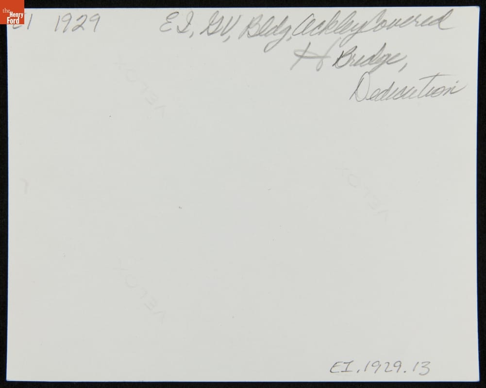 The Ackley Covered Bridge originally spanned Wheeling Creek in southwestern Pennsylvania. Henry Ford acquired the then 105-year-old bridge in 1937 and had it moved to Greenfield Village. Descendants of Joshua Ackley, one of the original bridge builders, and other invited guests joined Ford in the dedication ceremonies held on July 2, 1938.