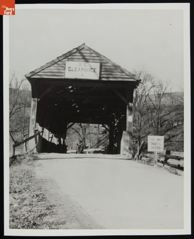 The Ackley Covered Bridge, built in 1832 on land owned by Joshua Ackley, spanned a branch of Wheeling Creek in southwestern Pennsylvania. By the mid 1930s the wooden bridge had outlived its usefulness and was slated for demolition. Descendants of the Ackley family purchased the bridge and offered it to Henry Ford. Ford sent his employees to document the structure before its relocation to Greenfield Village.
