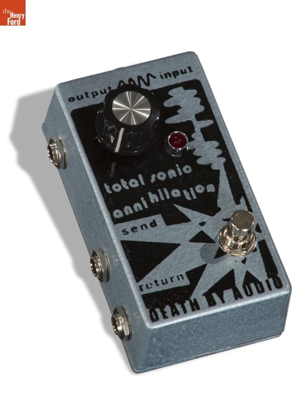 This guitar effects pedal is an example of the growing culture of creators building custom noisemaking devices. Death By Audio is a company that works in opposition to mass-production--they actively choose to hand-assemble and solder their pedals. These decisions, alongside the unique sonic qualities of the pedals, all feed into traditions of musical craftsmanship, amateur invention, and "DIY" spirit.