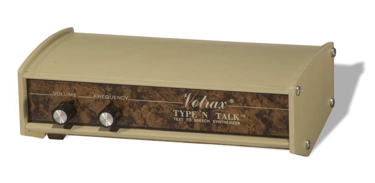 This text-to-speech synthesizer recreates the sounds of the human voice. Inventor Richard T. Gagnon created the Votrax to support his own failing vision. It could be used by the blind as a computer screen reader, or a speaking device for people with vocal cord paralysis. The Votrax shaped individual units of speech, allowing unlimited range and smoothness capable of conveying emotion.