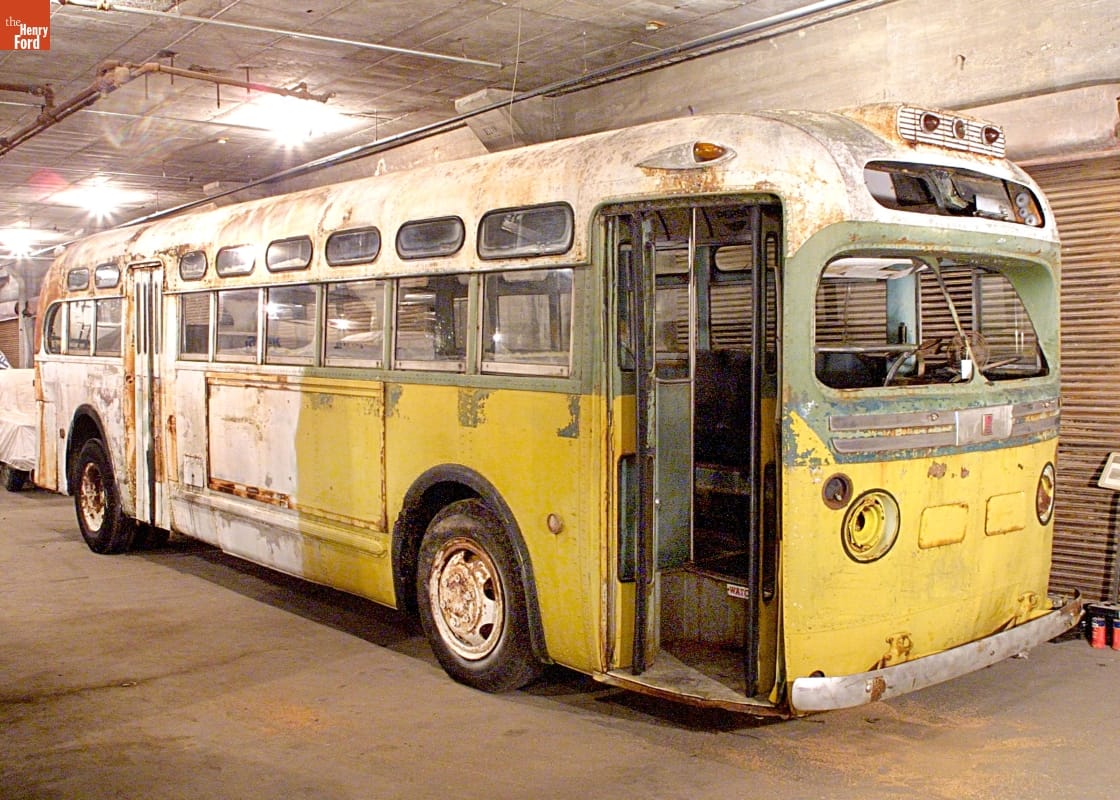 This bus, the site of Rosa Parks's stand against segregation laws, sat as a rusted storage shed before The Henry Ford acquired it and began a full restoration. Parks's act of defiance on December 1, 1955, sparked the Montgomery Bus Boycott, which helped to ignite the Civil Rights Movement. Today, the restored bus survives as a reminder of her courageous activism.