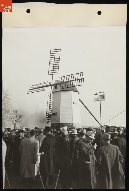The Ford Dealers of the United States and Canada purchased the Farris windmill in 1935. The Cape Cod structure, built in the mid-1600s and said to be the oldest windmill in the United States, would be a gift to Henry Ford. The windmill was dismantled and reassembled in Ford's Greenfield Village. In November 1936, thousands of Ford dealers attended the official presentation ceremony.