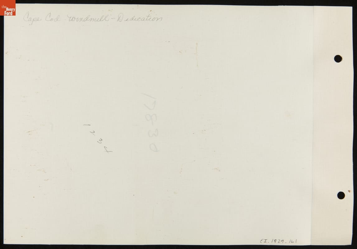 The Ford Dealers of the United States and Canada purchased the Farris windmill in 1935. The Cape Cod structure, built in the mid-1600s and said to be the oldest windmill in the United States, would be a gift to Henry Ford. The windmill was dismantled and reassembled in Ford's Greenfield Village. In November 1936, thousands of Ford dealers attended the official presentation ceremony.
