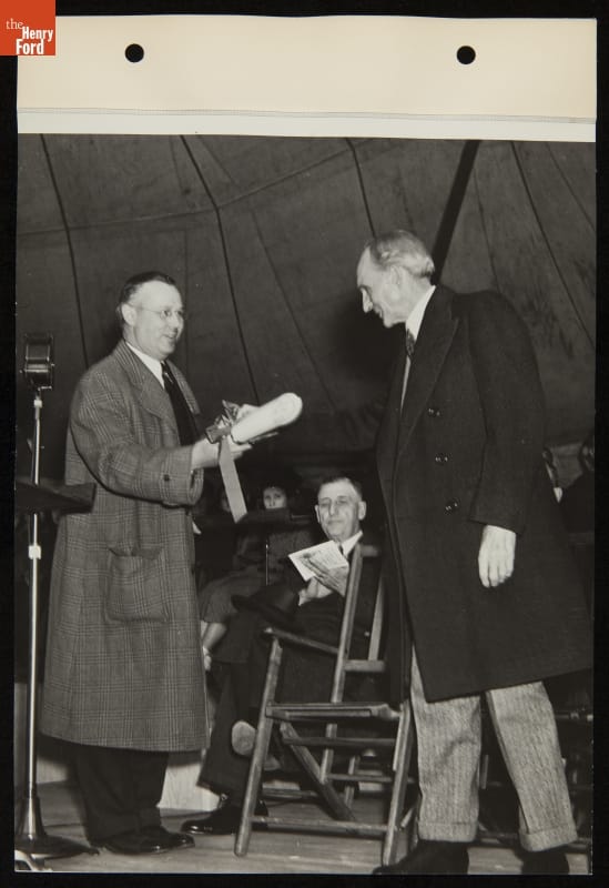 Ford Dealers Presenting Henry Ford with Farris Windmill in Greenfield Village, November 6, 1936