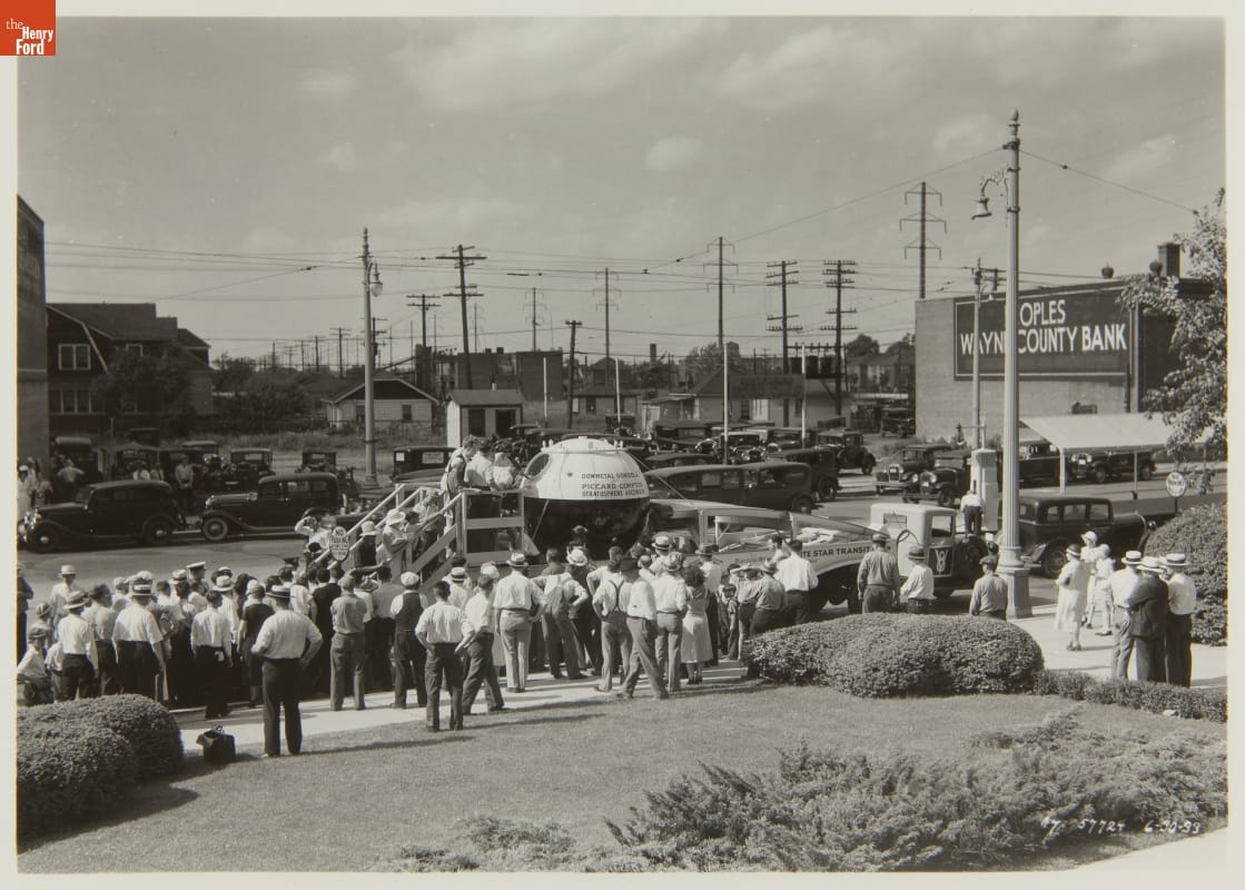 Crowd Watching Ford V-8 Truck Hauling Balloon Gondola for the Piccard-Compton Stratosphere Ascension, June 6, 1933