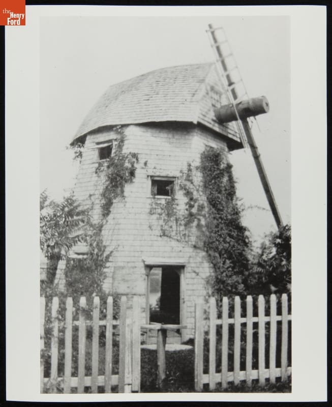 Built in the mid-1600s, the Farris windmill is said to be the oldest windmill in the United States. It operated in Cape Cod, Massachusetts -- ocean breezes moved the sails that turned the grain milling machinery inside. In 1935, the Ford Dealers of the United States and Canada purchased the windmill and moved it to Greenfield Village as a gift for Henry and Edsel Ford.