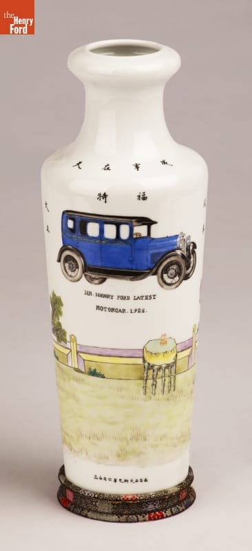 Over the years, Henry Ford received hundreds of gifts from people who felt a connection with the automotive entrepreneur. For many, he was "one of them," someone who also just happened to become a great industrialist. The fact that this is one of a pair of vases given by a Swedish missionary posted in China demonstrates his world-wide appeal.